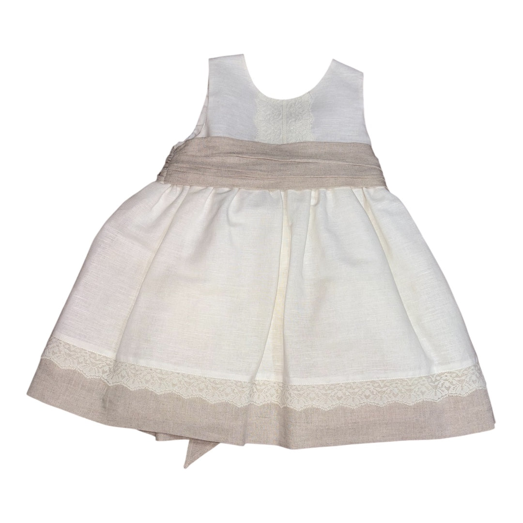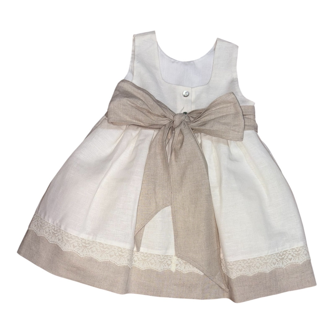 Abito della linea Cua Cuak in lino nel colore panna e tortora. È perfetto per un look estivo unico.
