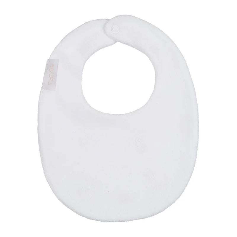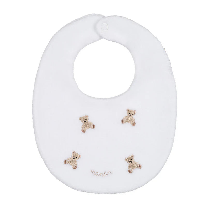 Bavaglio bianco in ciniglia con ricamo orsetti
