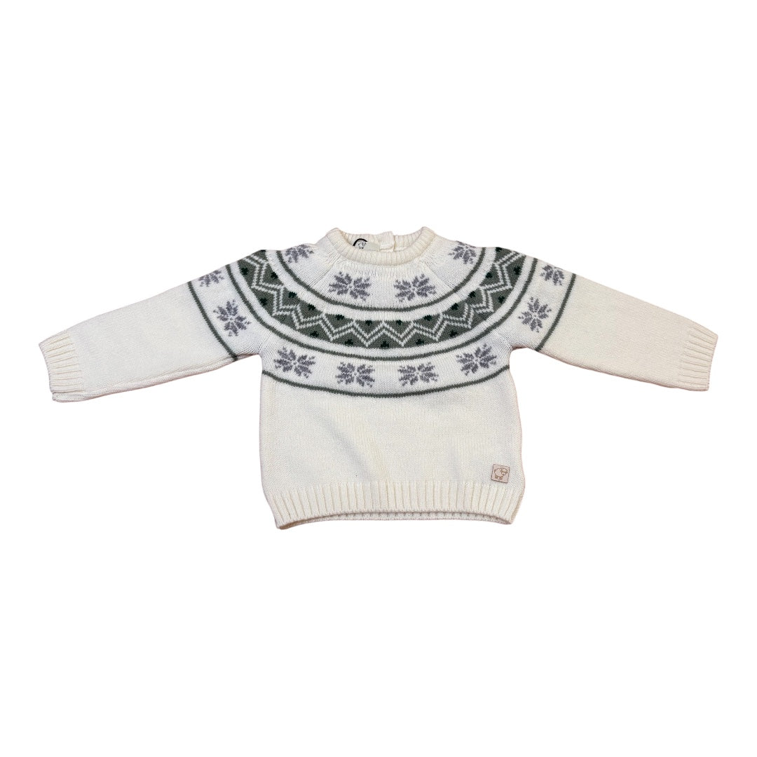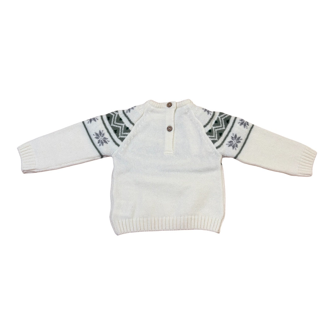 Il nuovo completino per neonati della collezione Maglificio di Verona,presenta un maglioncino girocollo con apertura sul retro e una simpatica e graziosa fantasia ed un pantalone morbido e lungo nel colore colore verde salvia.