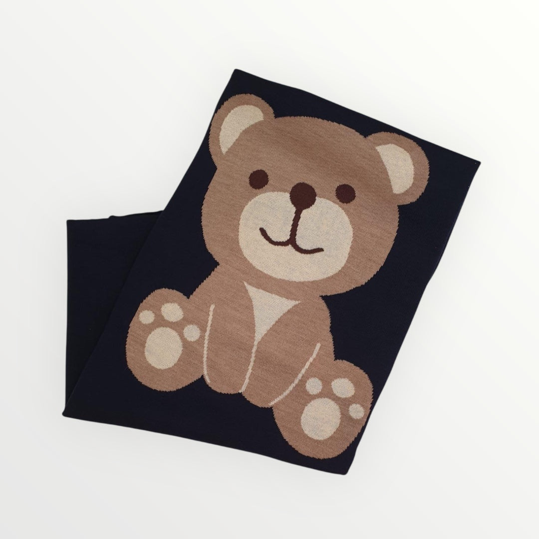 Dolcissima copertina in lana blucon disegno di orsetto sorridente, pensata per coccolare e riscaldare il tuo bebè in ogni momento.Realizzata in lana merino , è ideale per la pelle delicata del neonato e perfetta da utilizzare in culla, carrozzina o passeggino.