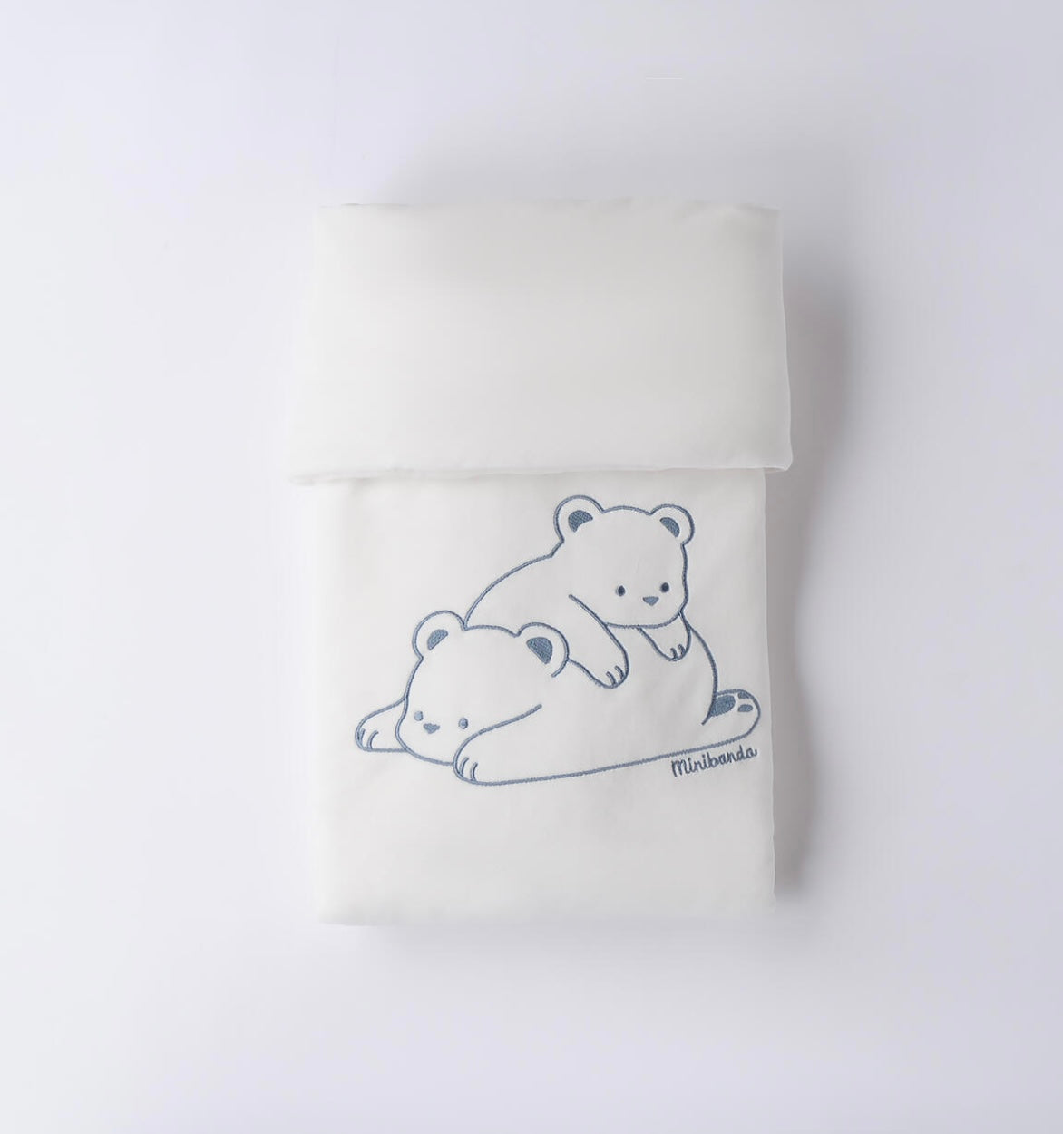 Copertina per neonato Minibanda in ciniglia con imbottitura in ovatta. Ideale per la culla. Ricamo orsi. Altezza 100 cm, larghezza 75 cm.