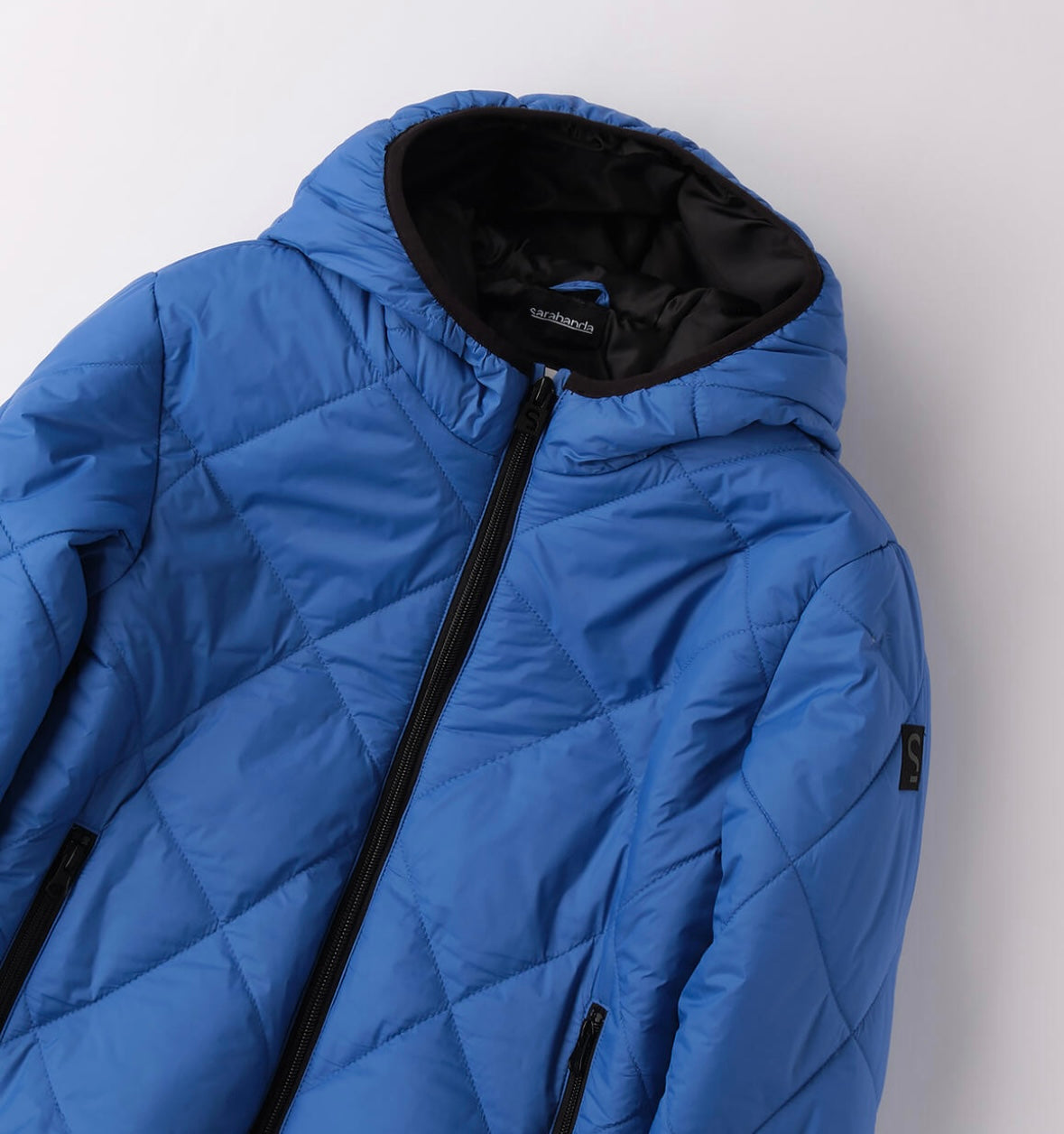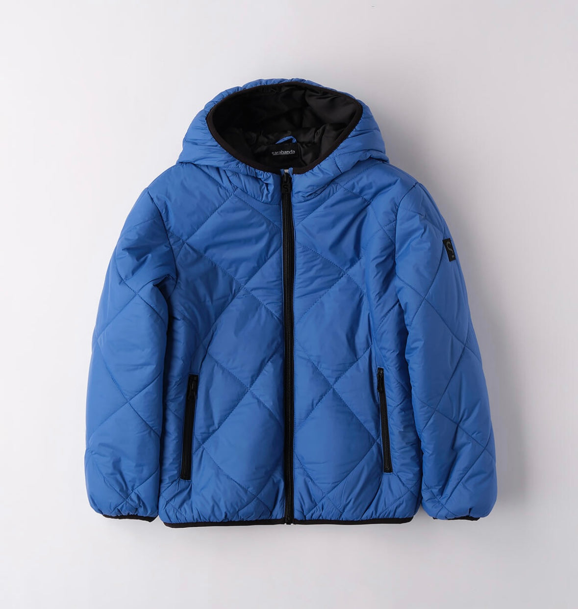 Giubbotto ragazzo Sarabanda realizzato in nylon trapuntato, imbottito in ovatta. Modello 100 grammi. Apertura con zip. Giubbotto con cappuccio. Lunghezza ai fianchi.