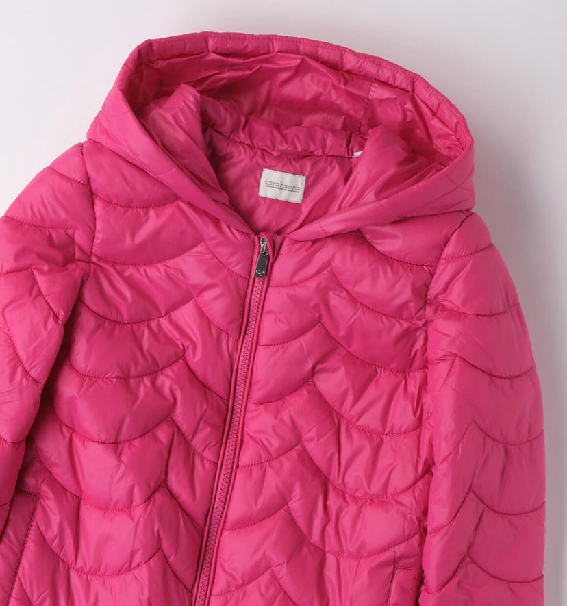 Giubbotto per bambina Sarabanda da 1 a 16 anni in nylon imbottito in ovatta. Il modello 100 grammi presenta apertura frontale con zip, comodo cappuccio nel colore fucsia.