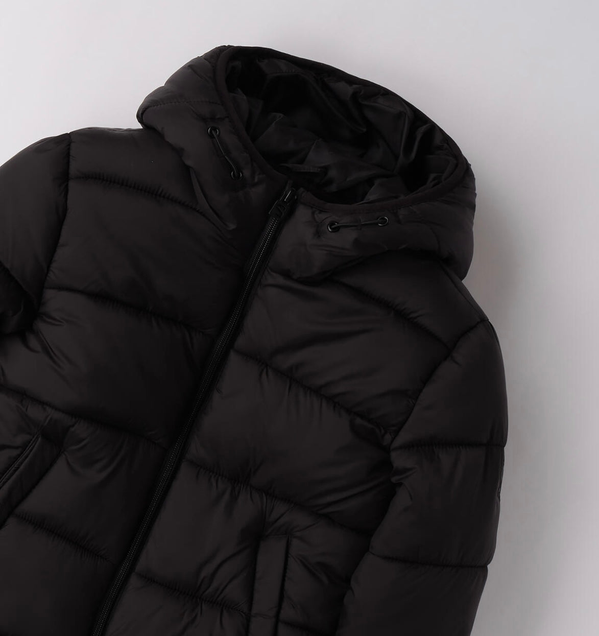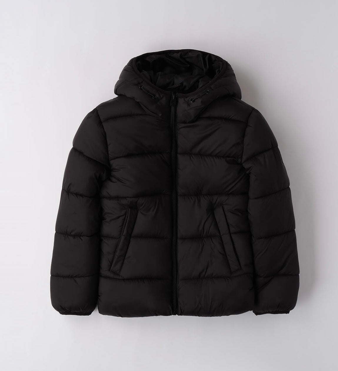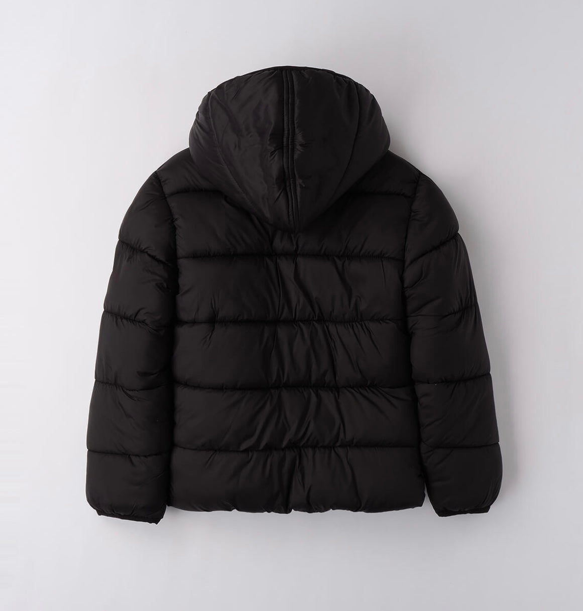 Giubbotto ragazzo nero con cappuccio e apertura con zip