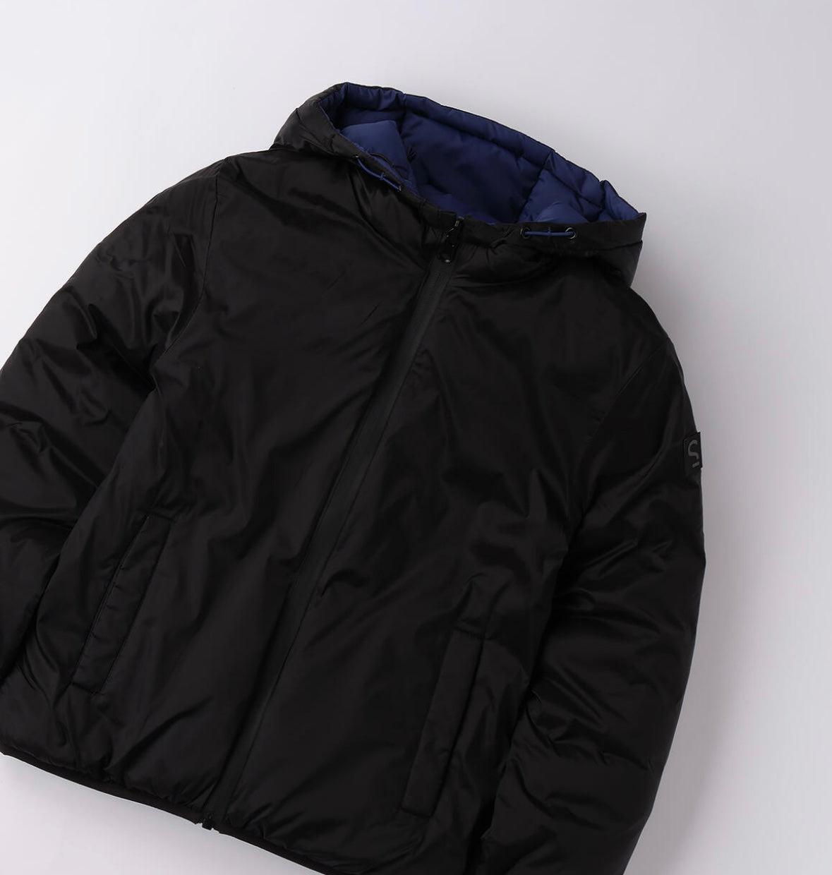 Giubbotto ragazzo Sarabanda realizzato in nylon trapuntato con imbottitura in ovatta. Modello reversibile con cappuccio e apertura con zip. Pesantezza invernale.