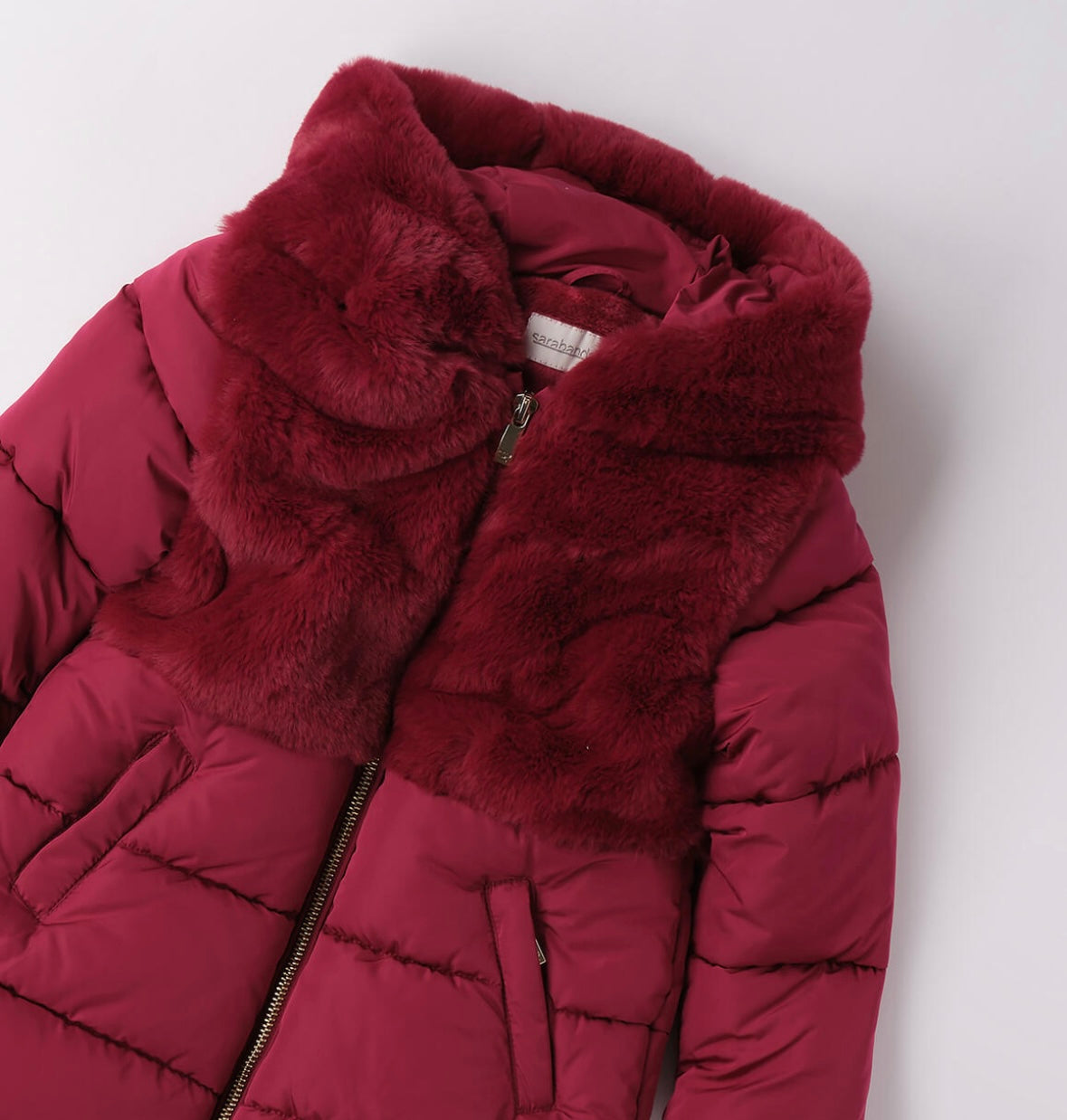 Giubbotto bambina Sarabanda realizzato in poliestere con imbottitura in ovatta e fodera in caldo tessuto. Modello con cappuccio e apertura con zip con doppio cursore.
