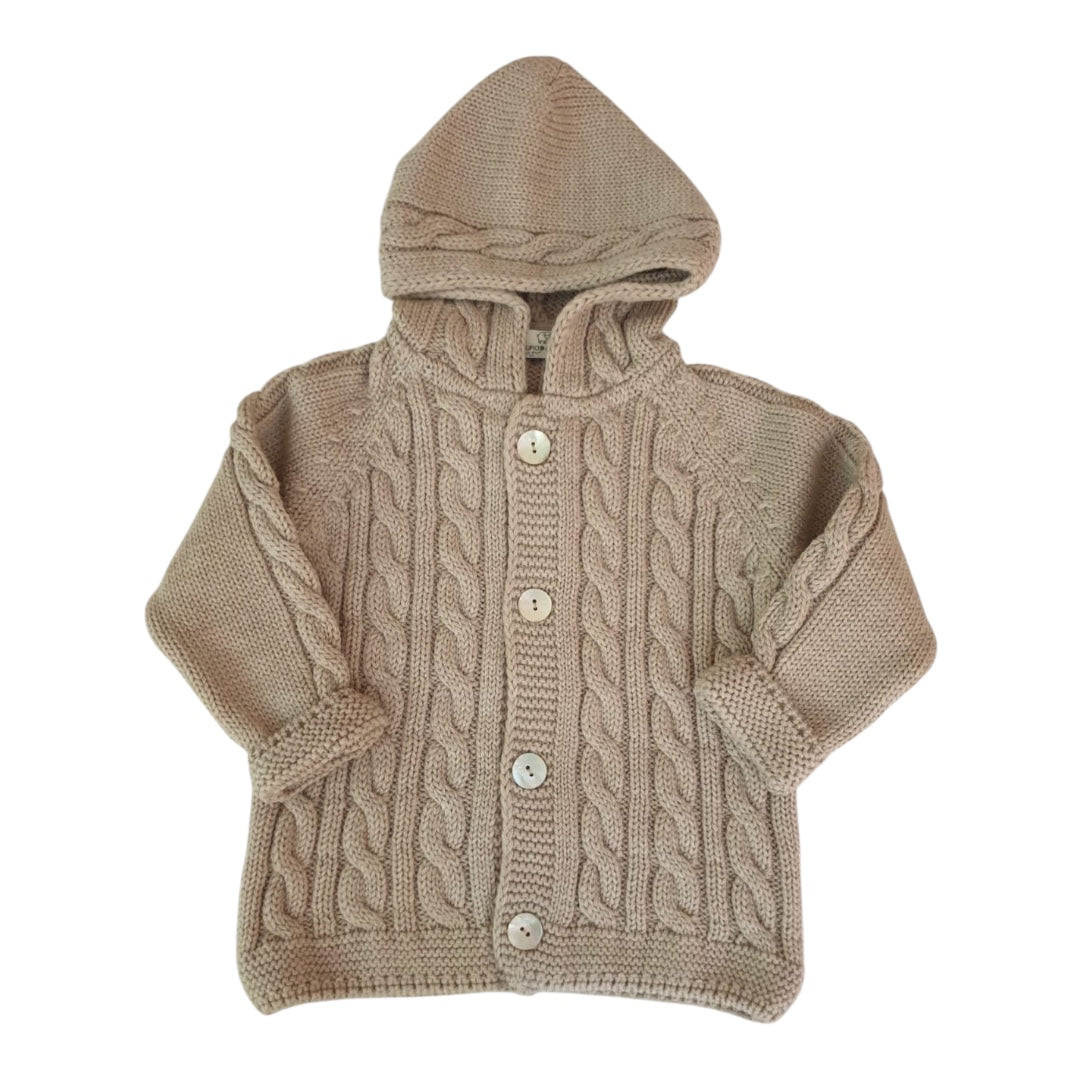 Cappottino a trecce in pura lana Merino, nel colore corda.
