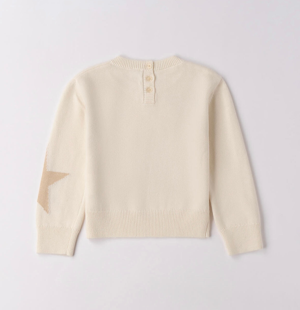 Maglione bambina Sarabanda realizzato in tricot con stelle intarsio e strass. Nel colore crema.