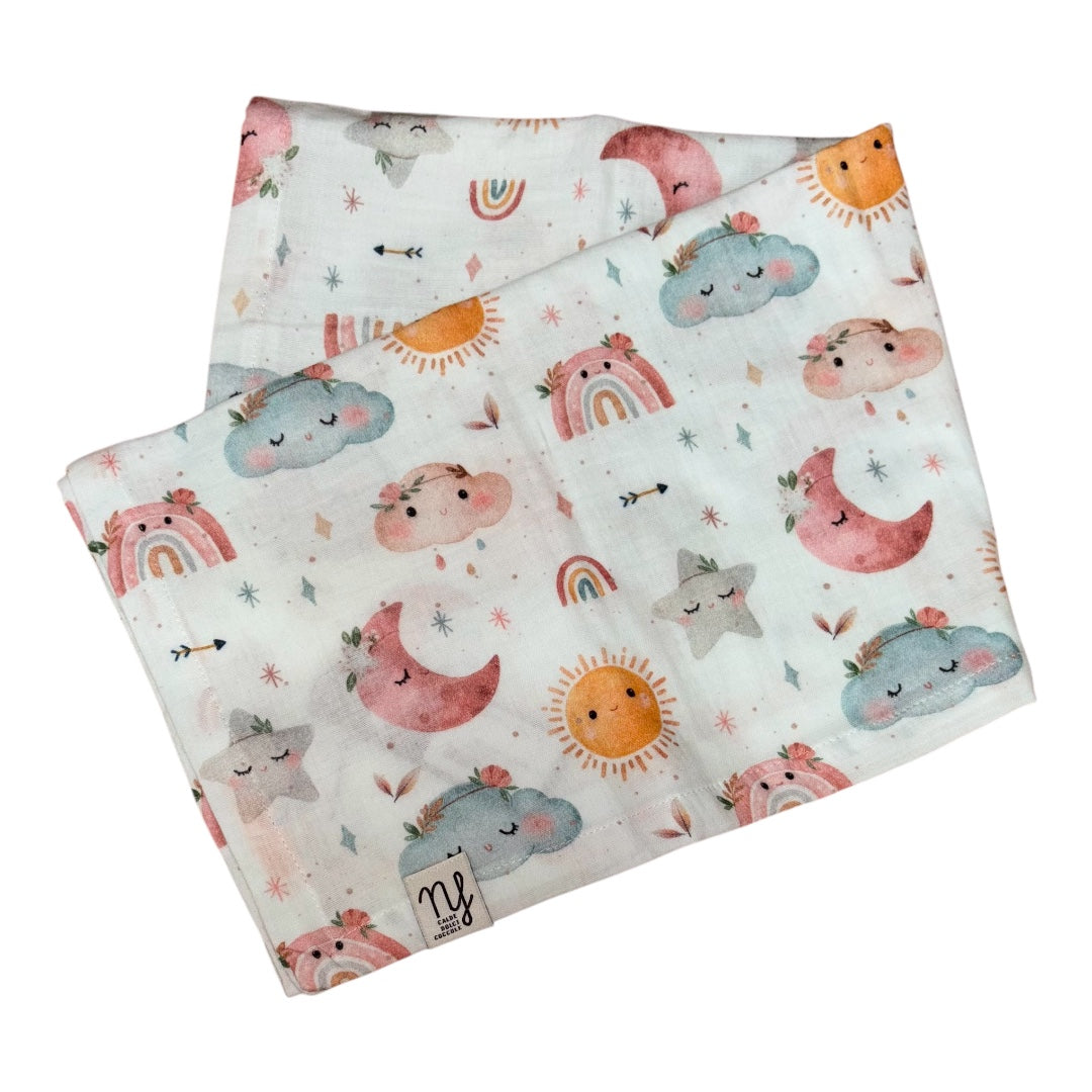 Caratteristiche: La mussola Arcobaleno di Nannafrufrù è amata dalle mamme perché preserva la pelle delicata e sensibile del bambino. Il tessuto, traspirante e assorbente, diventa più morbido ad ogni lavaggio. Puó essere utilizzato per proteggere la mamma durante l’allattamento, come base d’appoggio per il cambio pannolino, come proteggi spalla in caso di rigurgito, oppure come asciugamano o copertina leggera, e per proteggere il bambino dallo sfregamento se appoggiato ai seggiolino auto o passeggini. La misura è 90 cm x 65 cm circa.