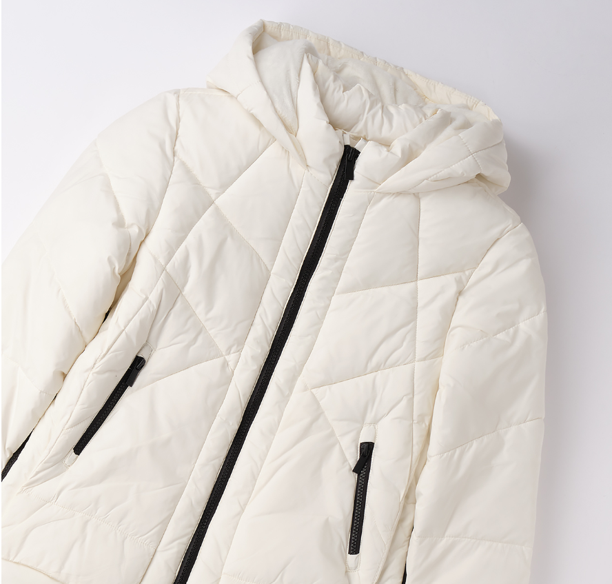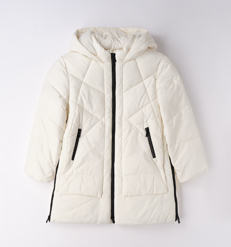 Giaccone lungo imbottito con cappuccio, apertura con zip, spacchi laterali con zip, fodera calda