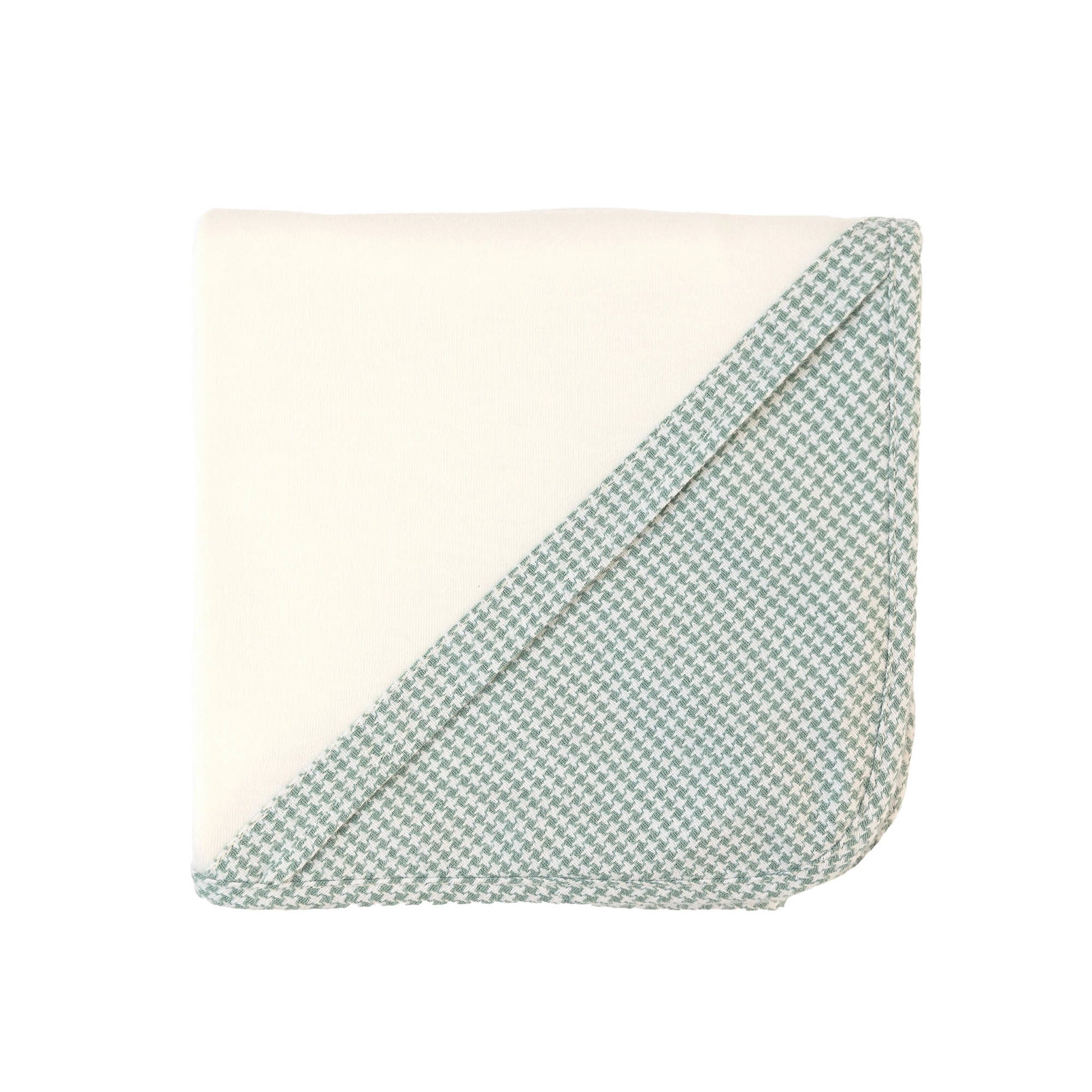 Quadrato della collezione neonato Baby gi, bianco con applicazione in fantasia pied de poule verde. Miss 67x67cm. Il cotone è ideale per la pelle delicata del tuo bambino.