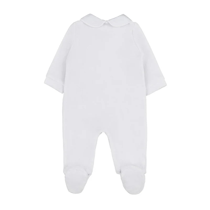Tutina aperta davanti bianca in ciniglia con orsetti